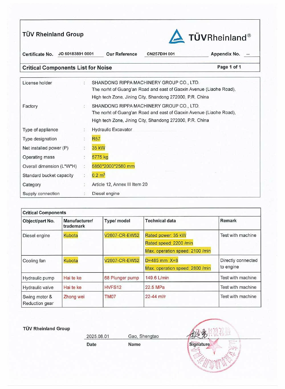 TÜV Certification Query
